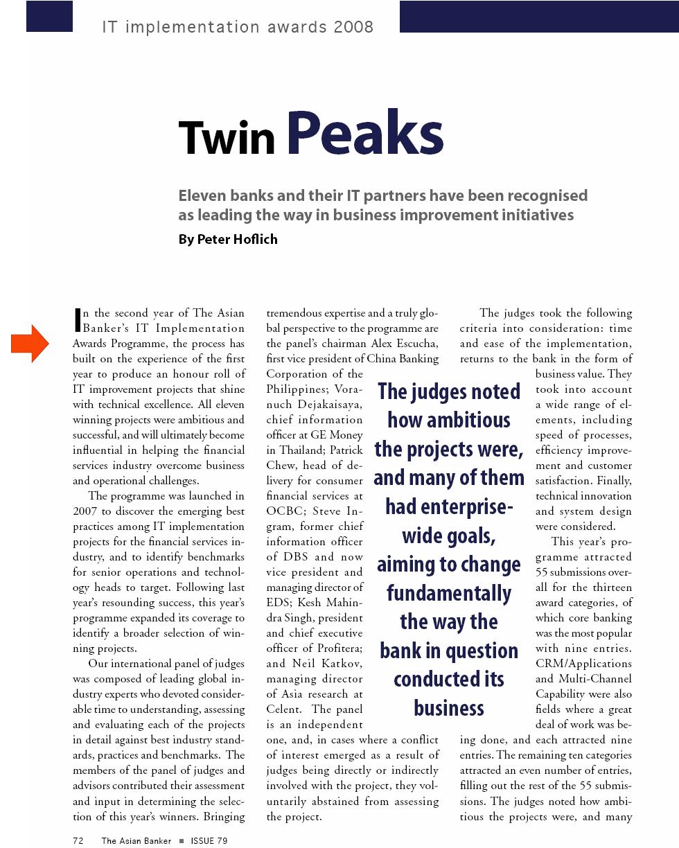 ALEXANDER ESCUCHA CHAIRS PANEL OF JUDGES OF THE ASIAN BANKER'S IT IMPLEMENTATION AWARDS (2008)
