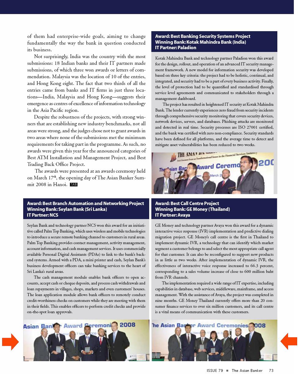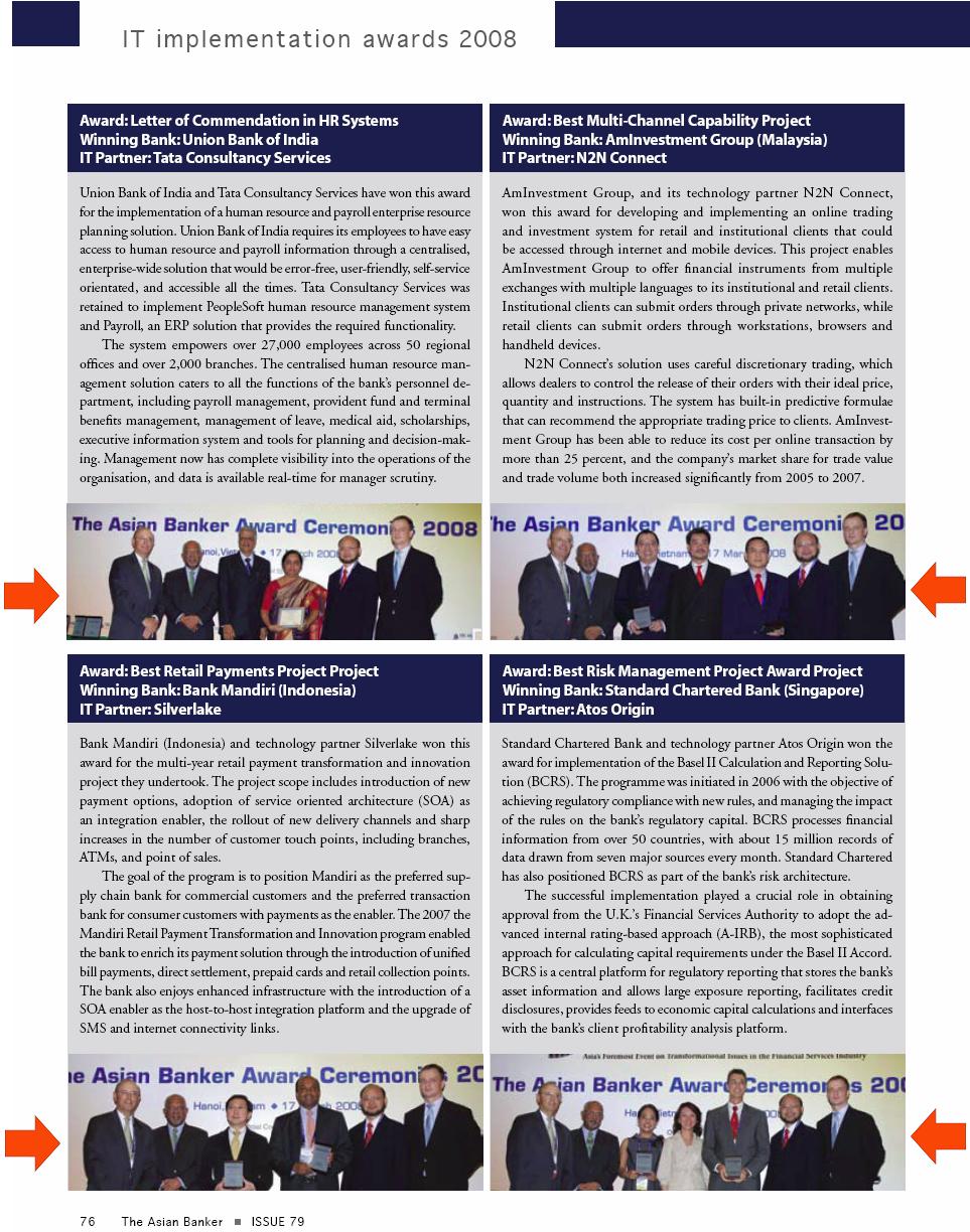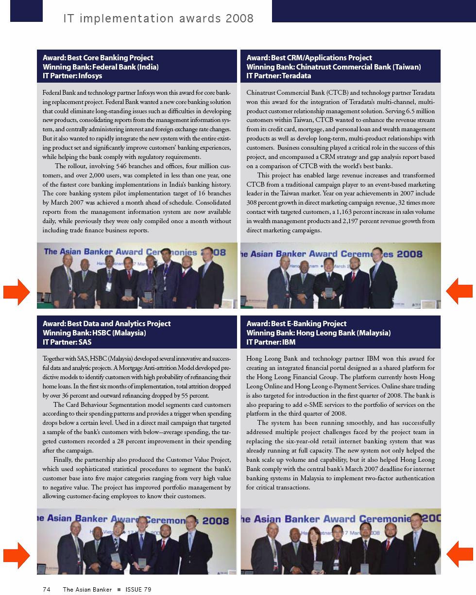 The 2008 awards were presented during The 9th Asian Banker Summit at The Melia, Hanoi, Vietnam on March 17-19, 2008 |