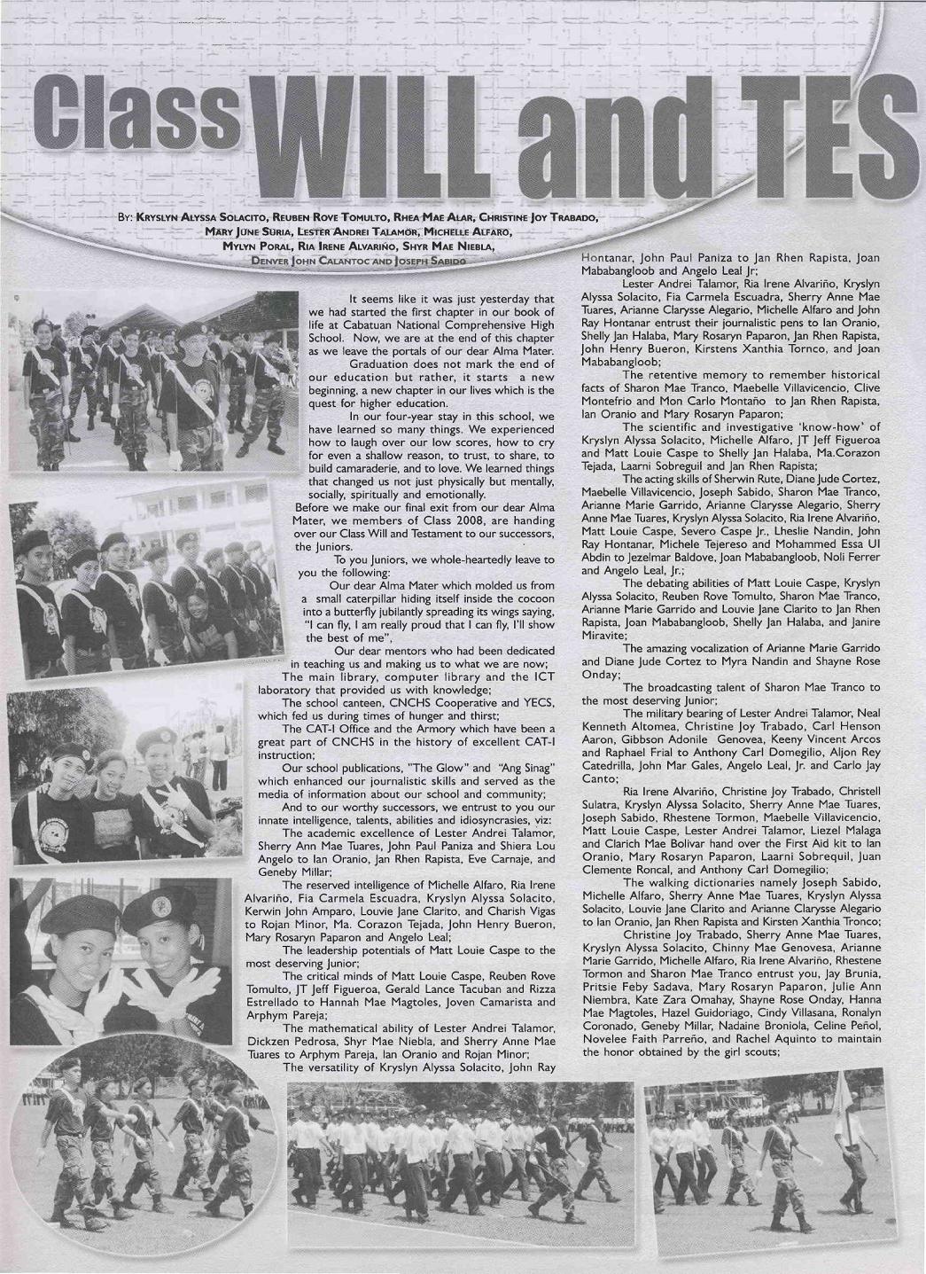 CLASS WILL AND TESTAMENT, CLASS HISTORY, CLASS PROPHECY