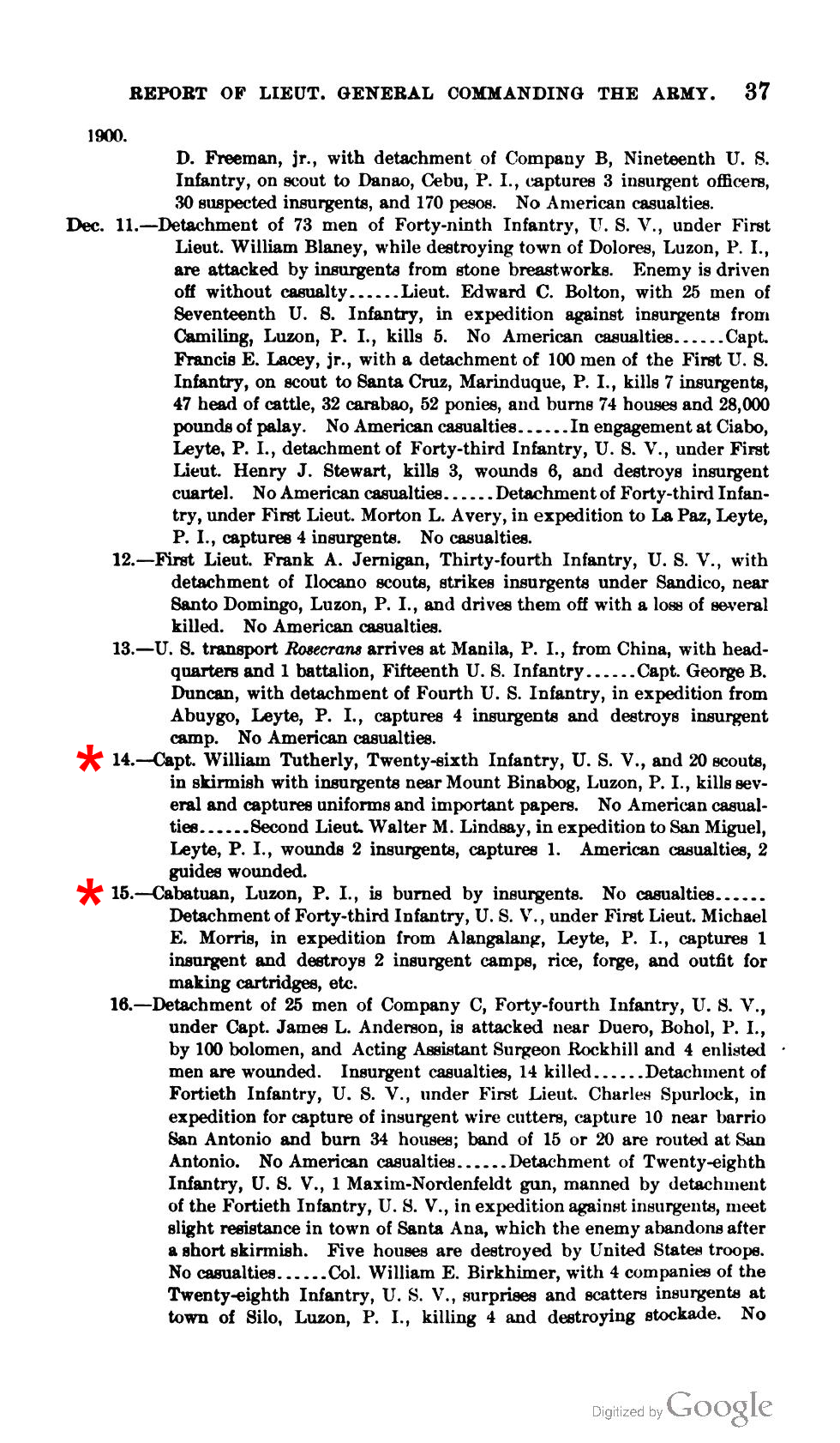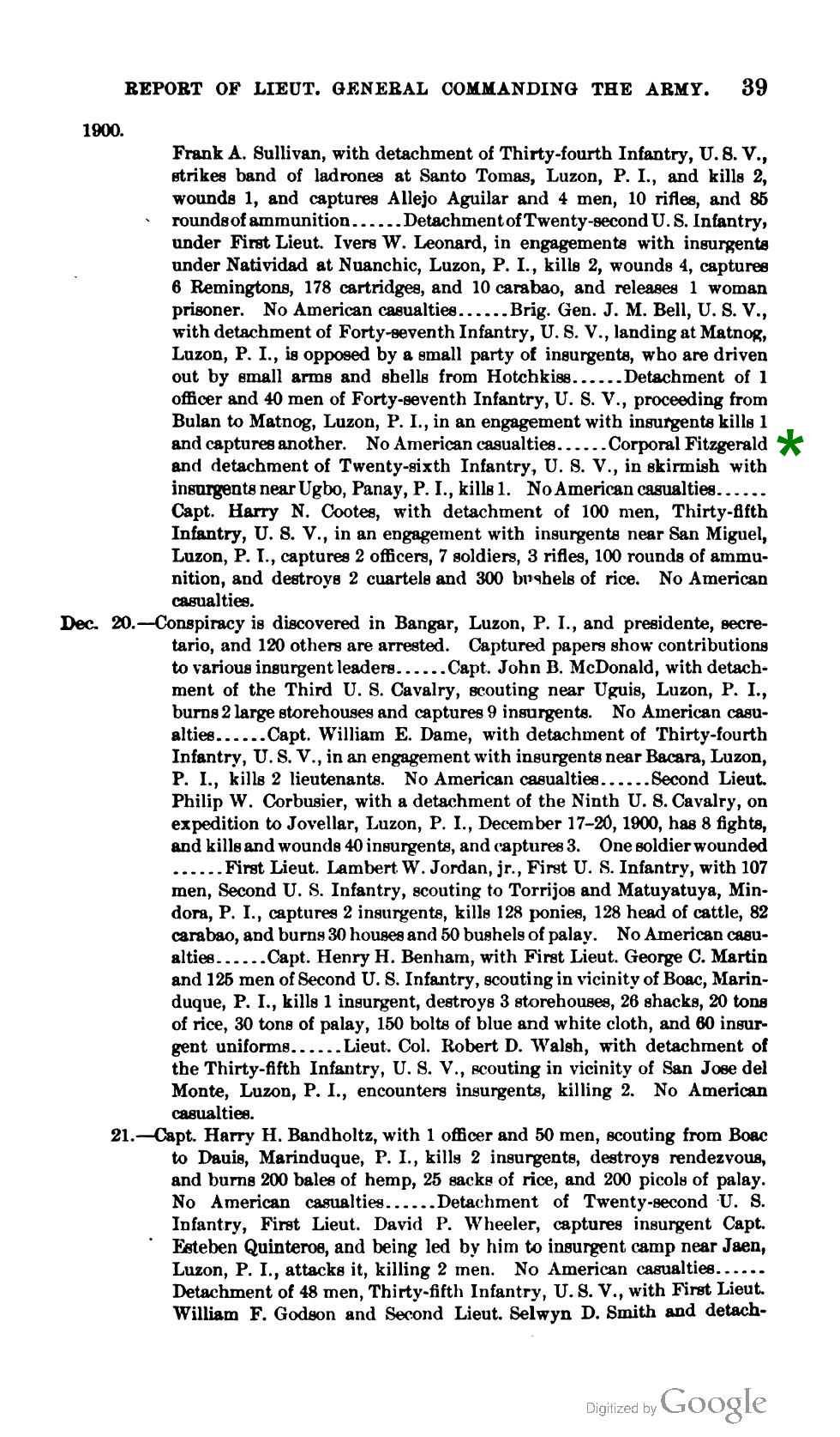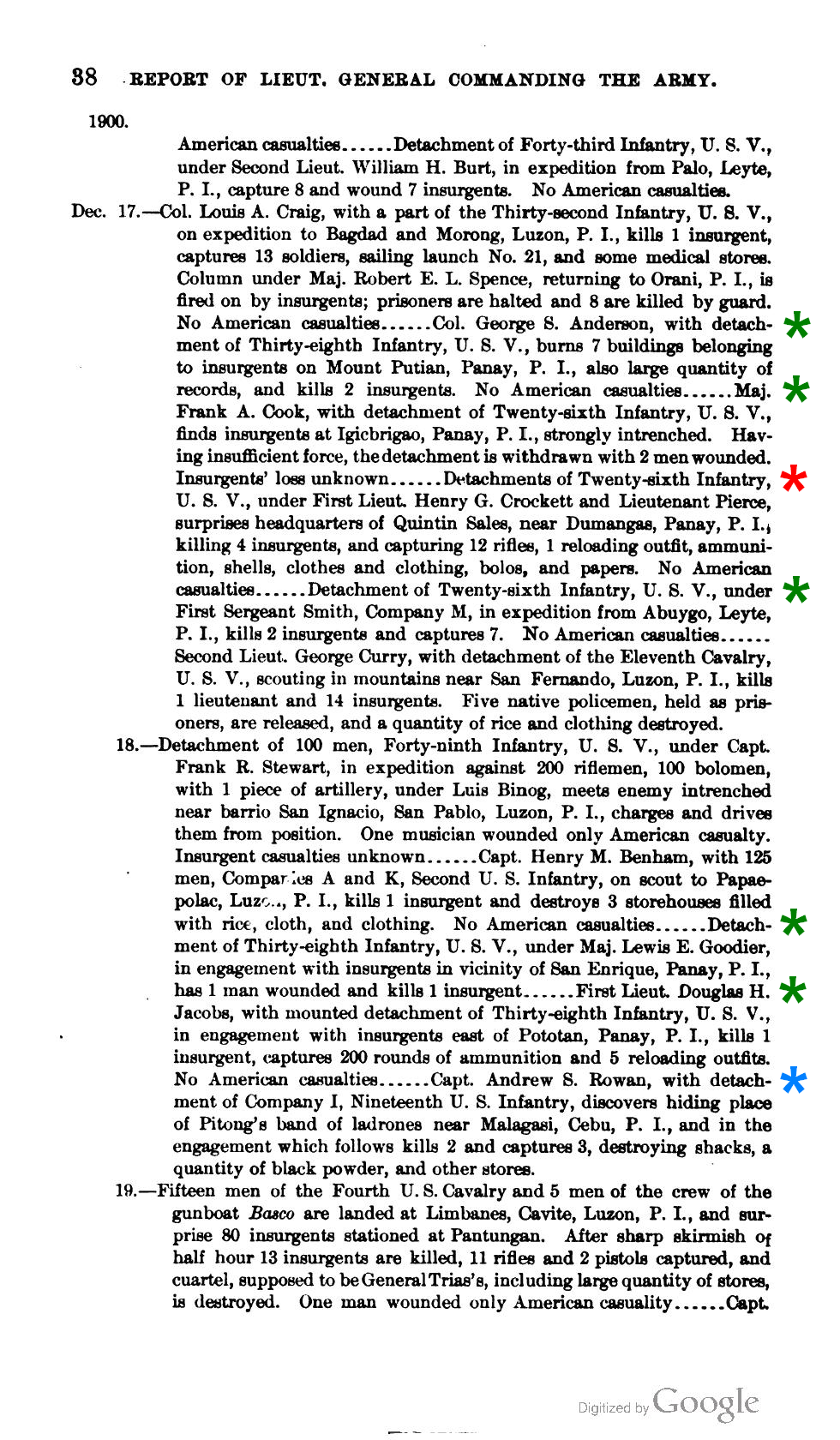 Summary of Principal Events Connected with Military Operations in the Philippine Islands