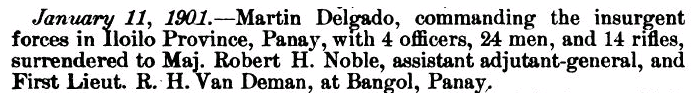 You see, when Julian Confesor and Agustin Jiloca were hanged on July 5, 1901, General Martin Delgado had already surrendered 6 months earlier, having initially surrendered on January 11, 1901 and formally surrendered on February 2, 1901.