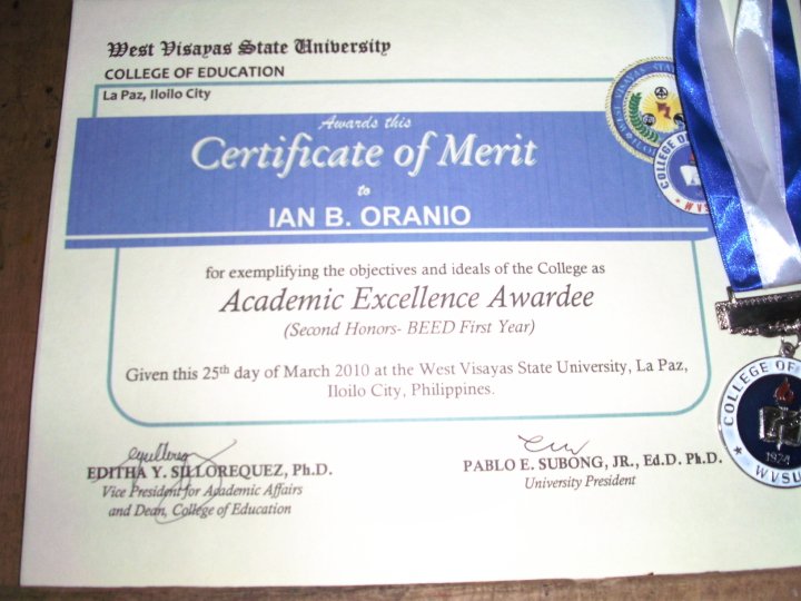 IAN BRUNIA ORANIOCNCHS Class 2009 - 2nd Honors, BEED 1st year Bachelor of Elementary Education WVSU Papuri 2010 West Visayas State University March 25, 2010 Photo courtesy of Ian Brunia Oranio |