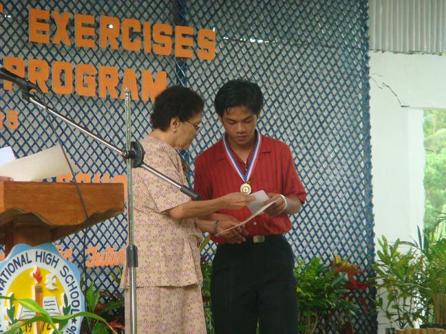 ![]() ![]() Mrs. Pacita Fajardo Salazar presenting the 2009 Cabatuan.com Achievement Award to Cristina Mae Tronco Photo by Joan Mababangloob ![]() Mrs. Pacita Fajardo Salazar presenting the 2008 Raymundo Caspe Casalmir Awards Photo courtesy of Ms. Evangeline S. Mallo Acao National High School |