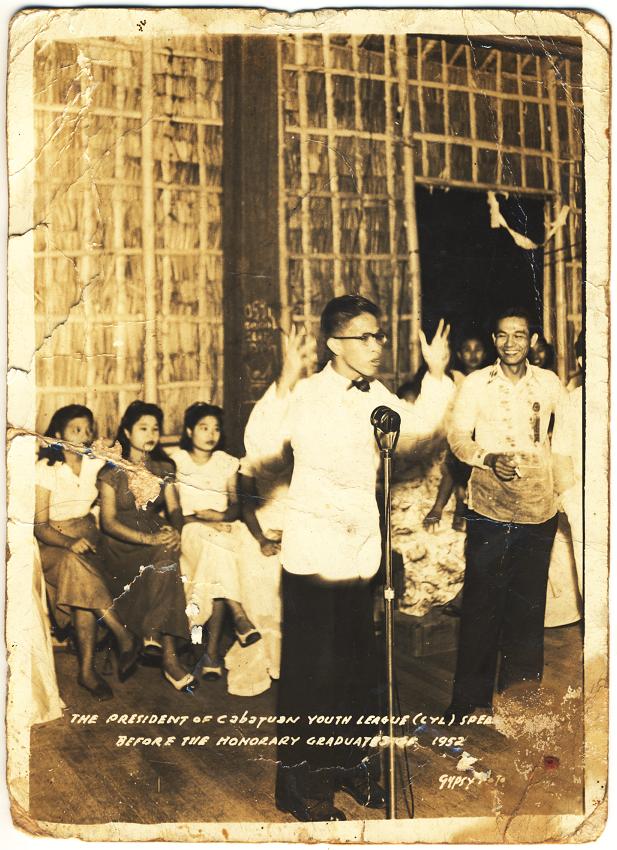 Jose Fajardo Miravite, the President of the Cabatuan Youth League (CYL) speaks before the honorary graduates of 1952