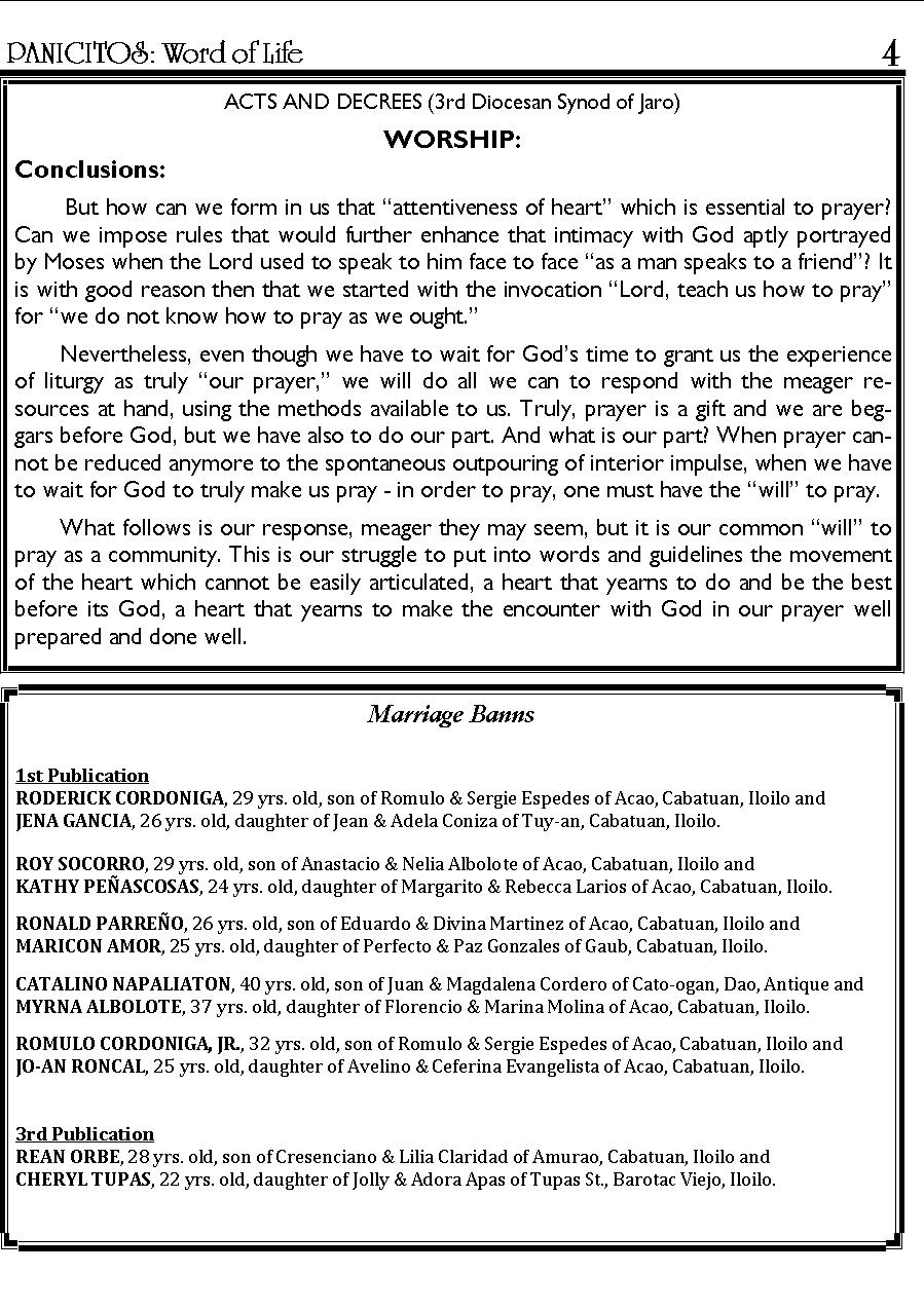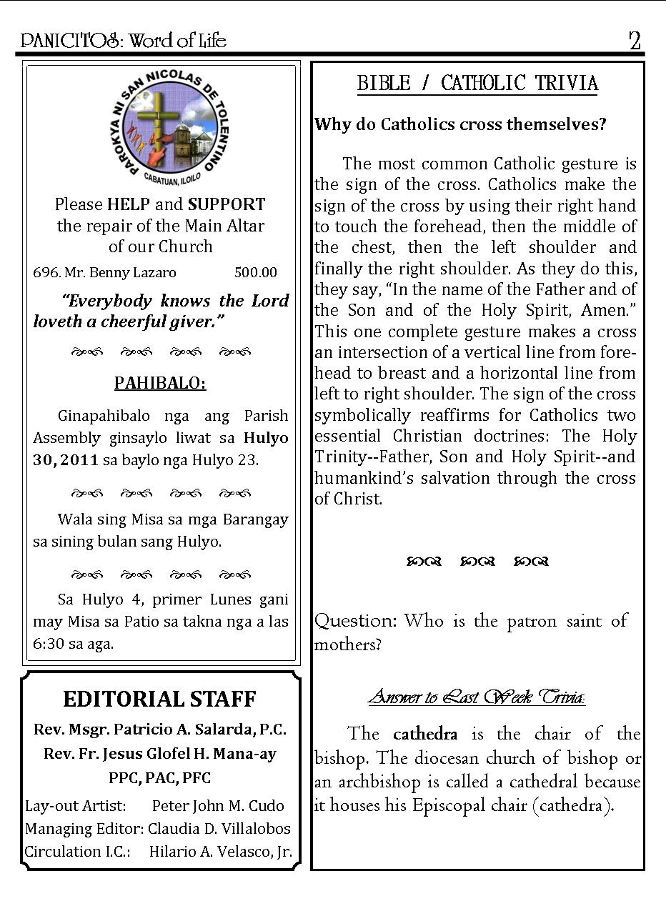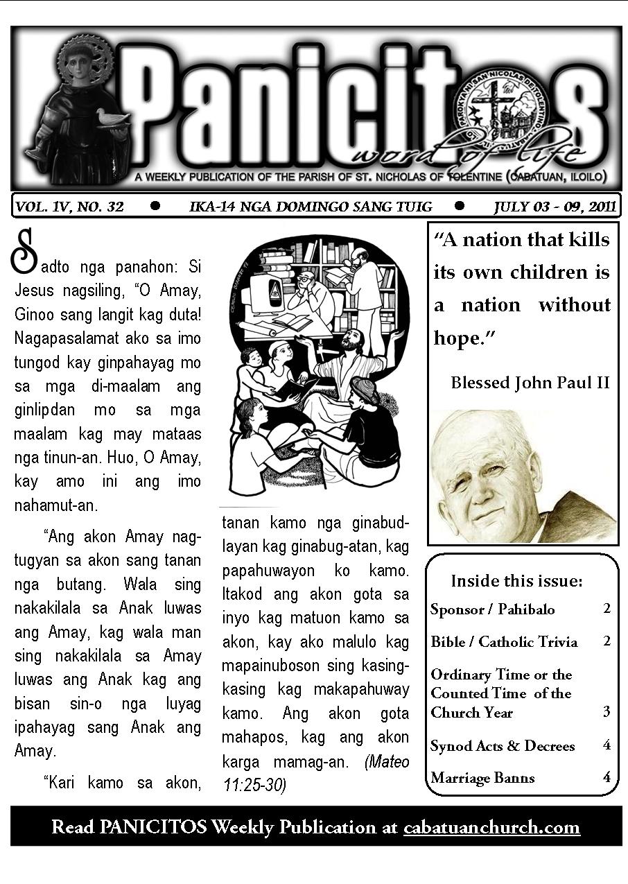A Weekly Publication of the Parish of San Nicolas de Tolentino, Cabatuan, Iloilo