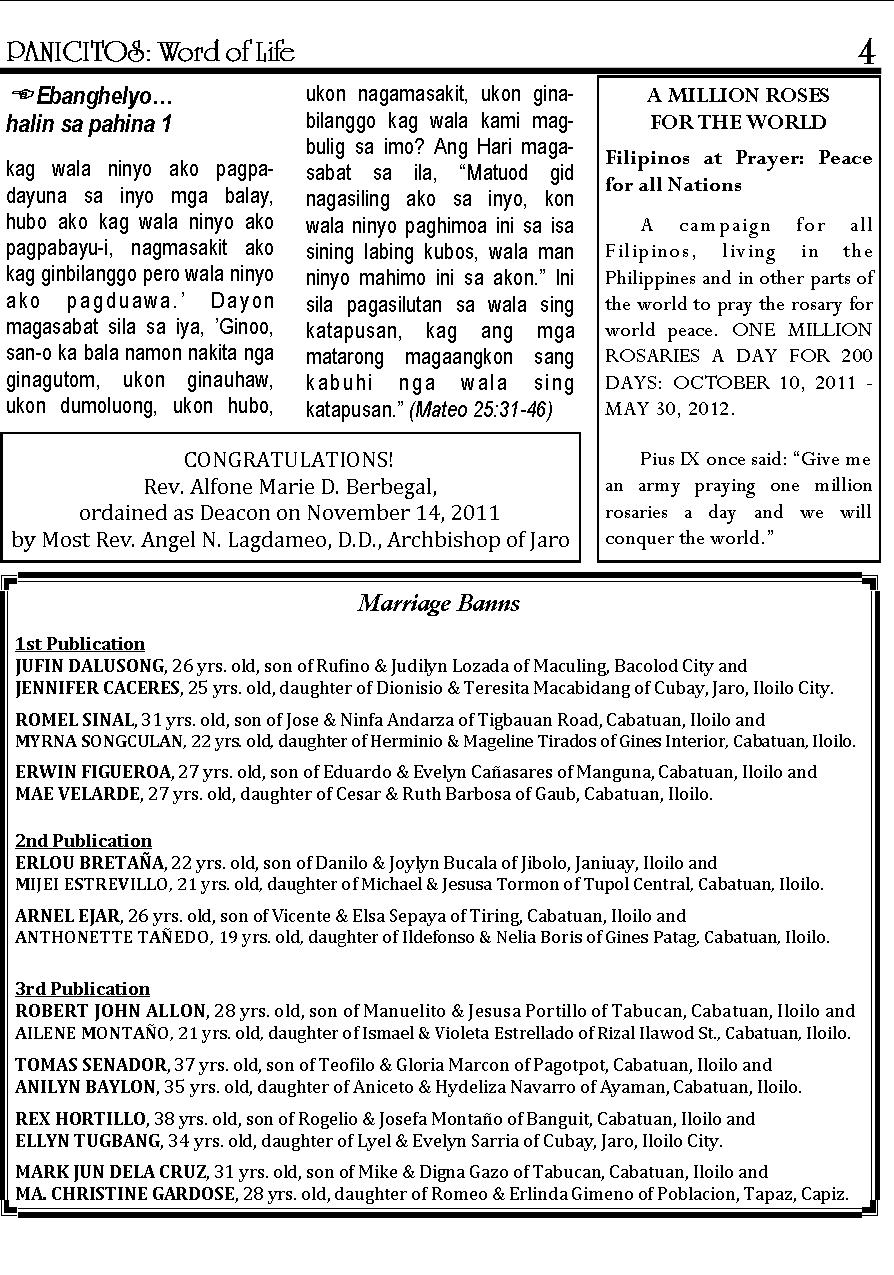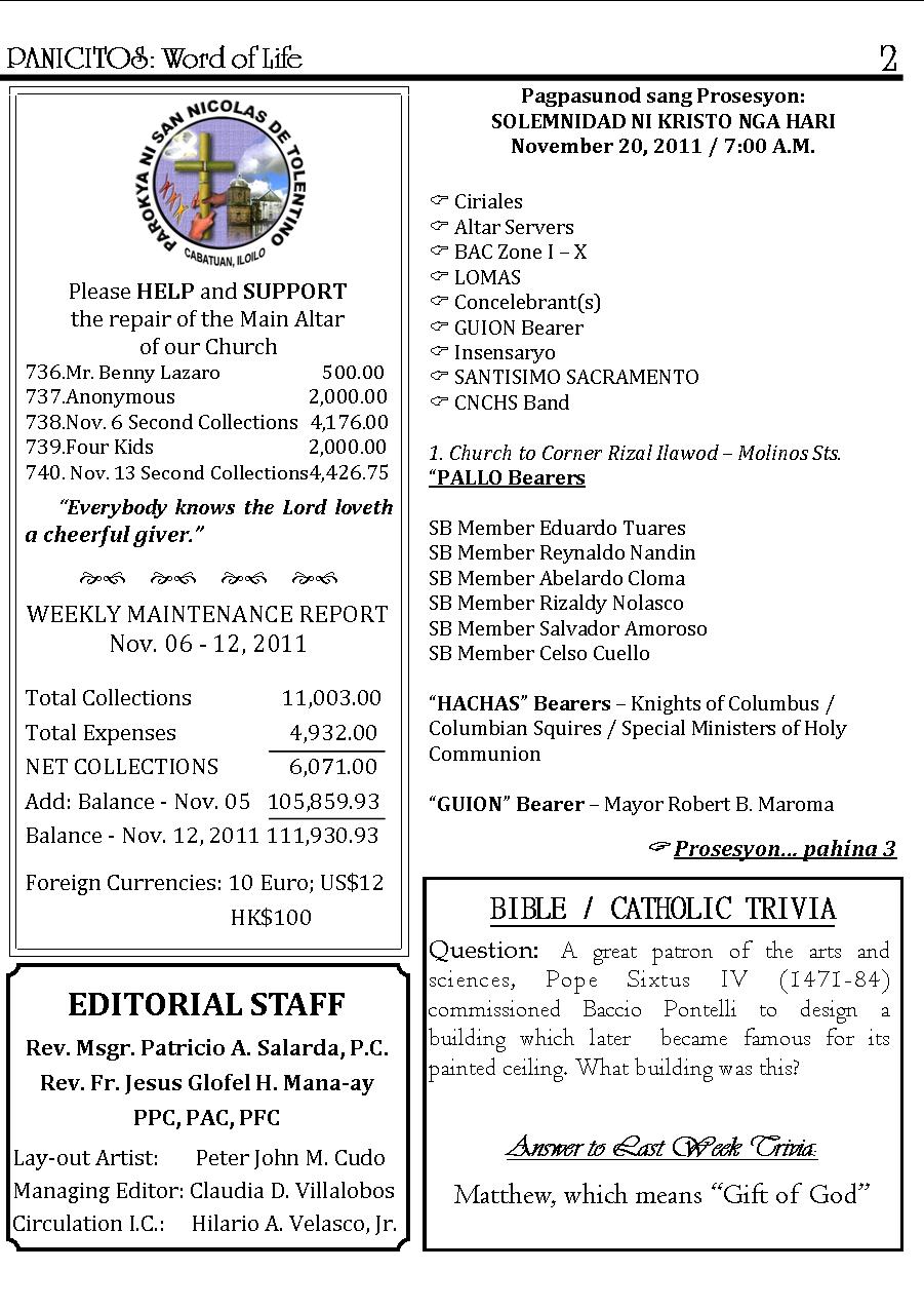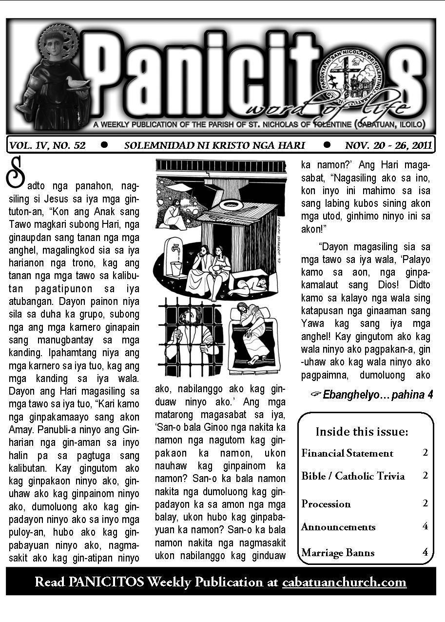 A Weekly Publication of the Parish of San Nicolas de Tolentino, Cabatuan, Iloilo