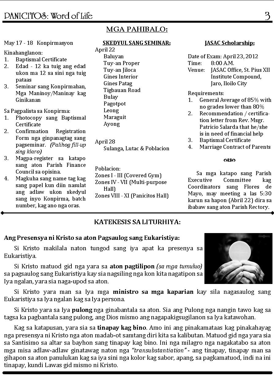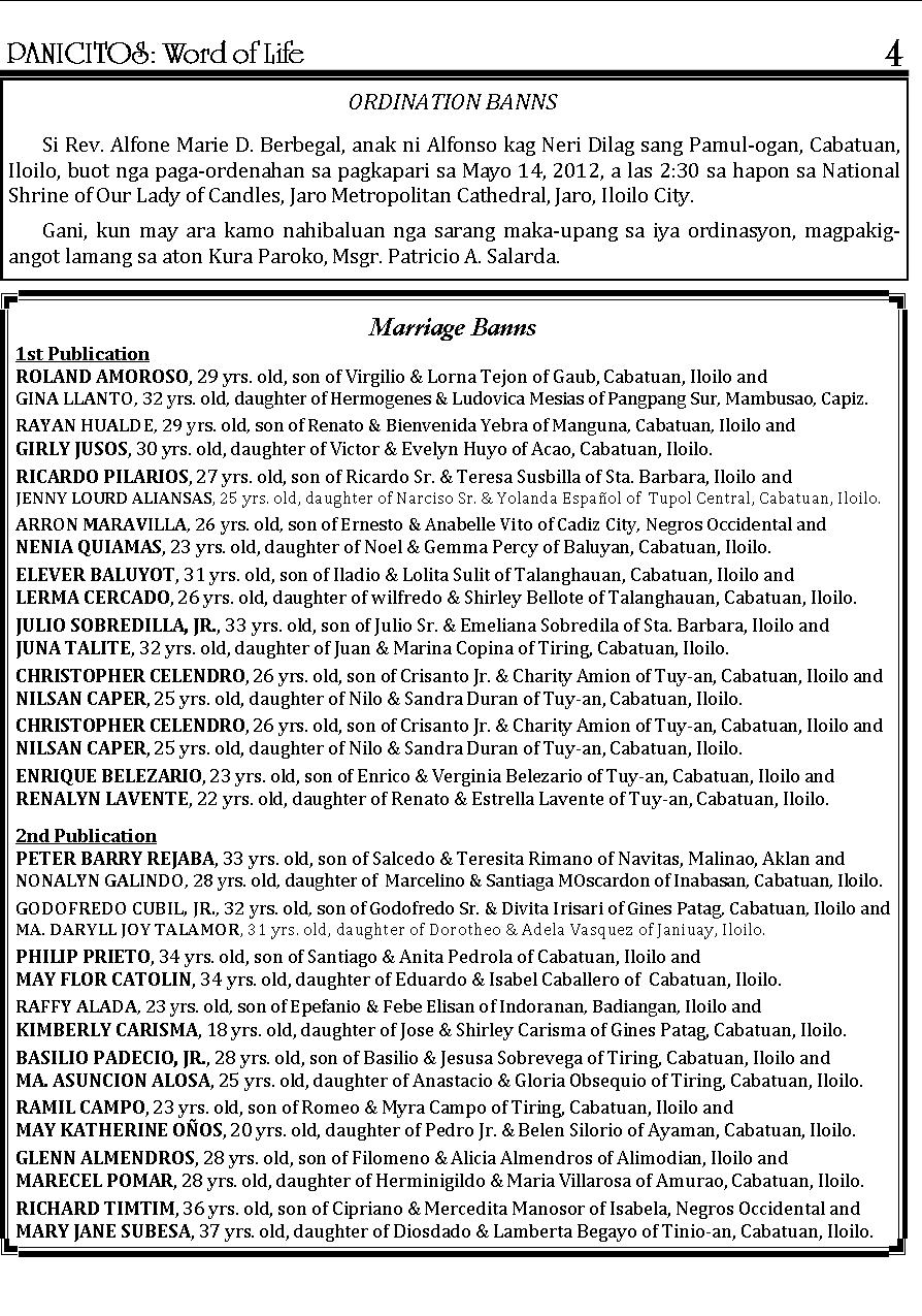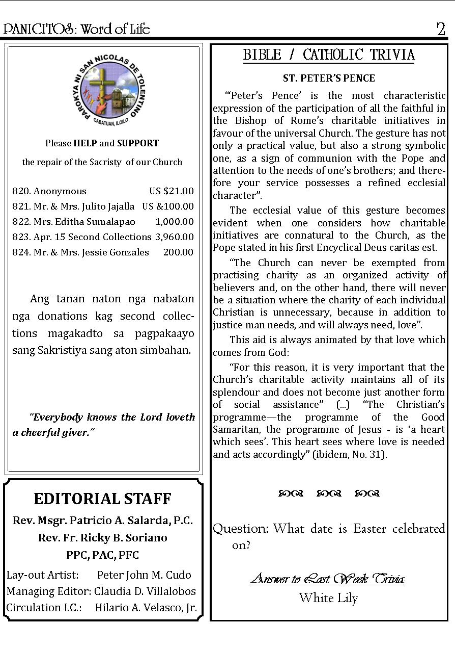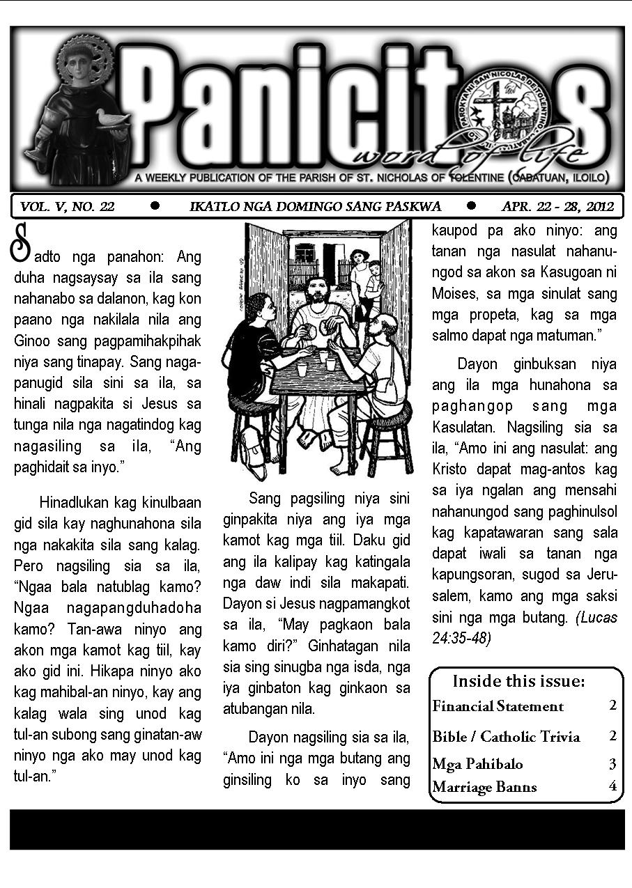 A Weekly Publication of the Parish of San Nicolas de Tolentino, Cabatuan, Iloilo