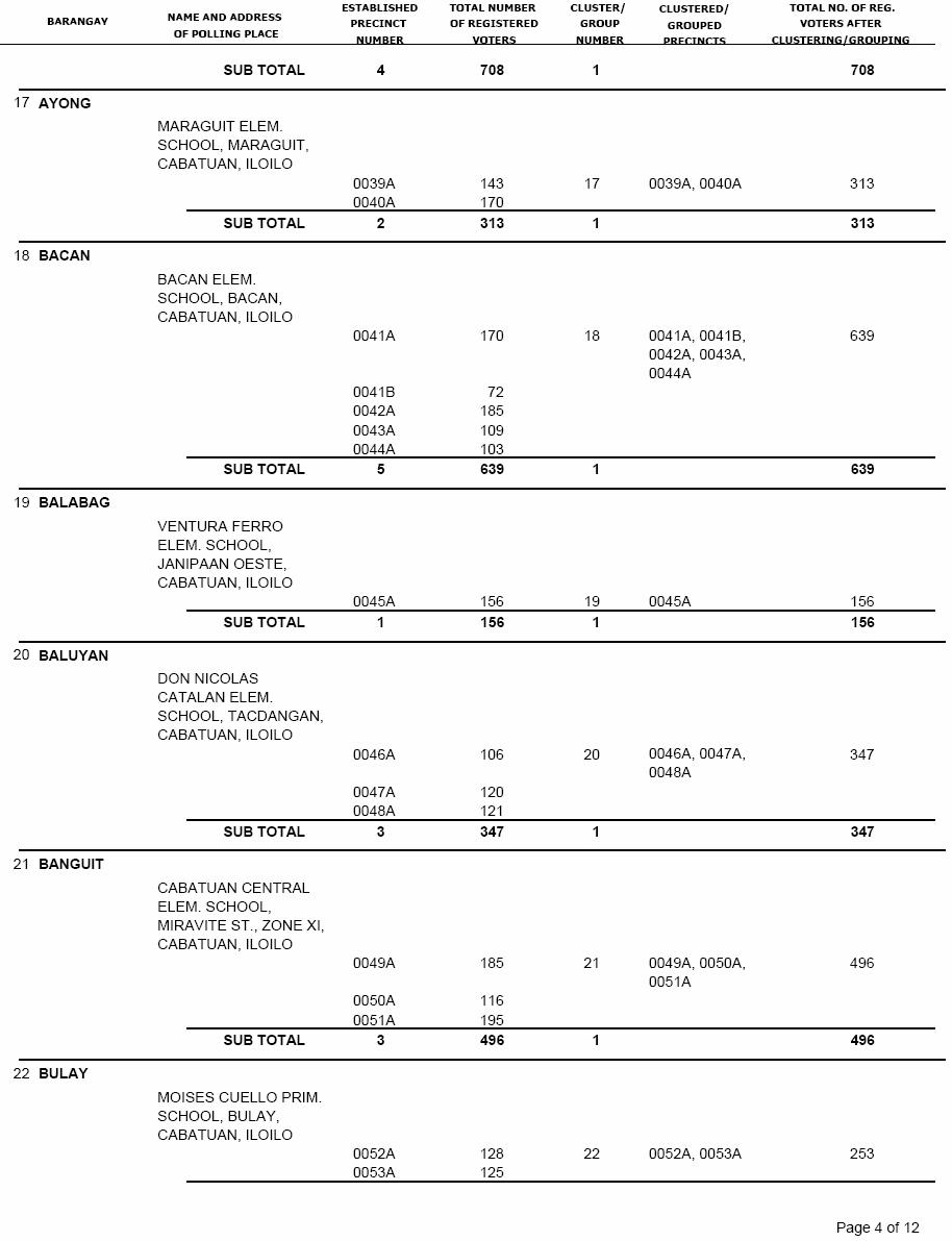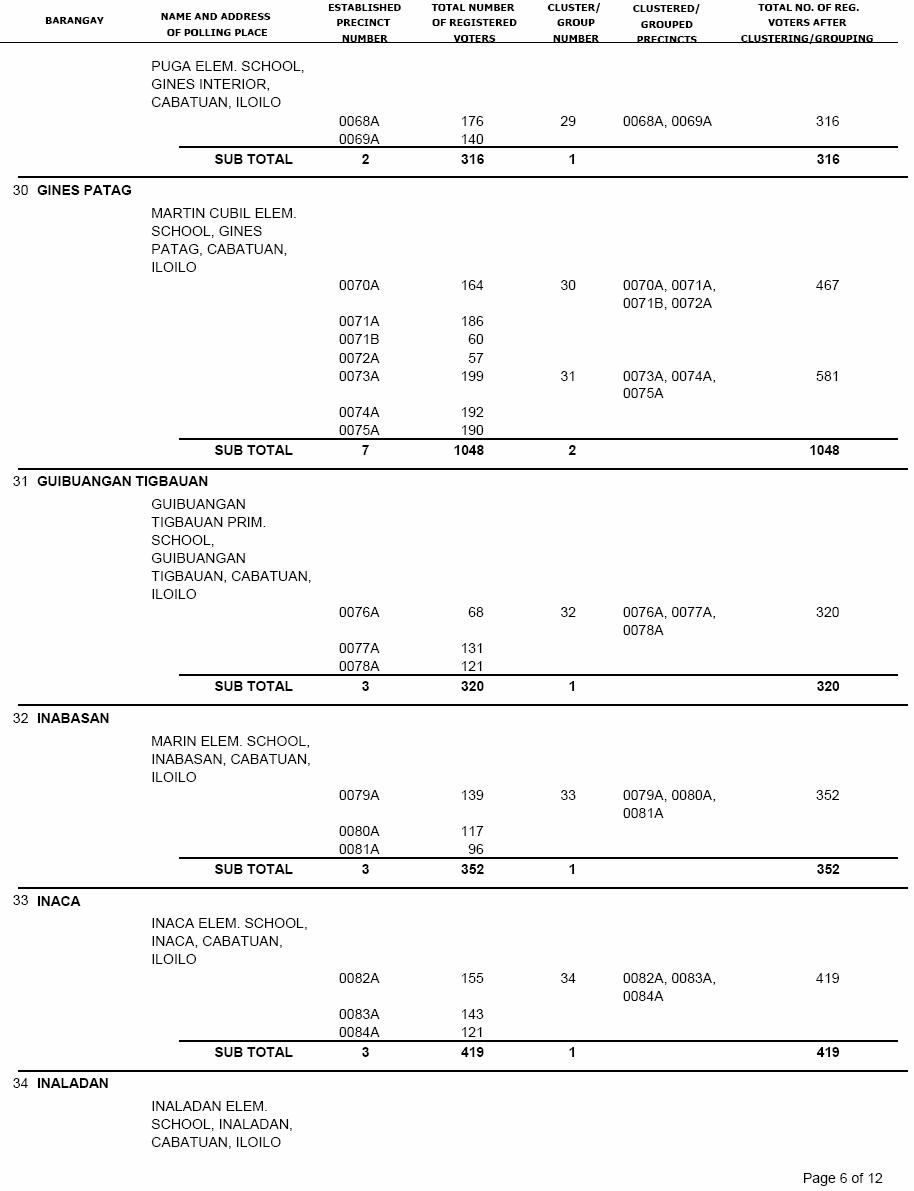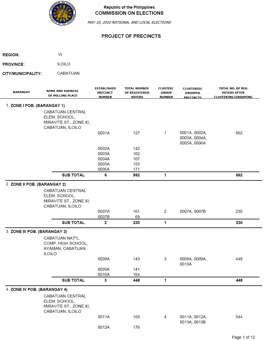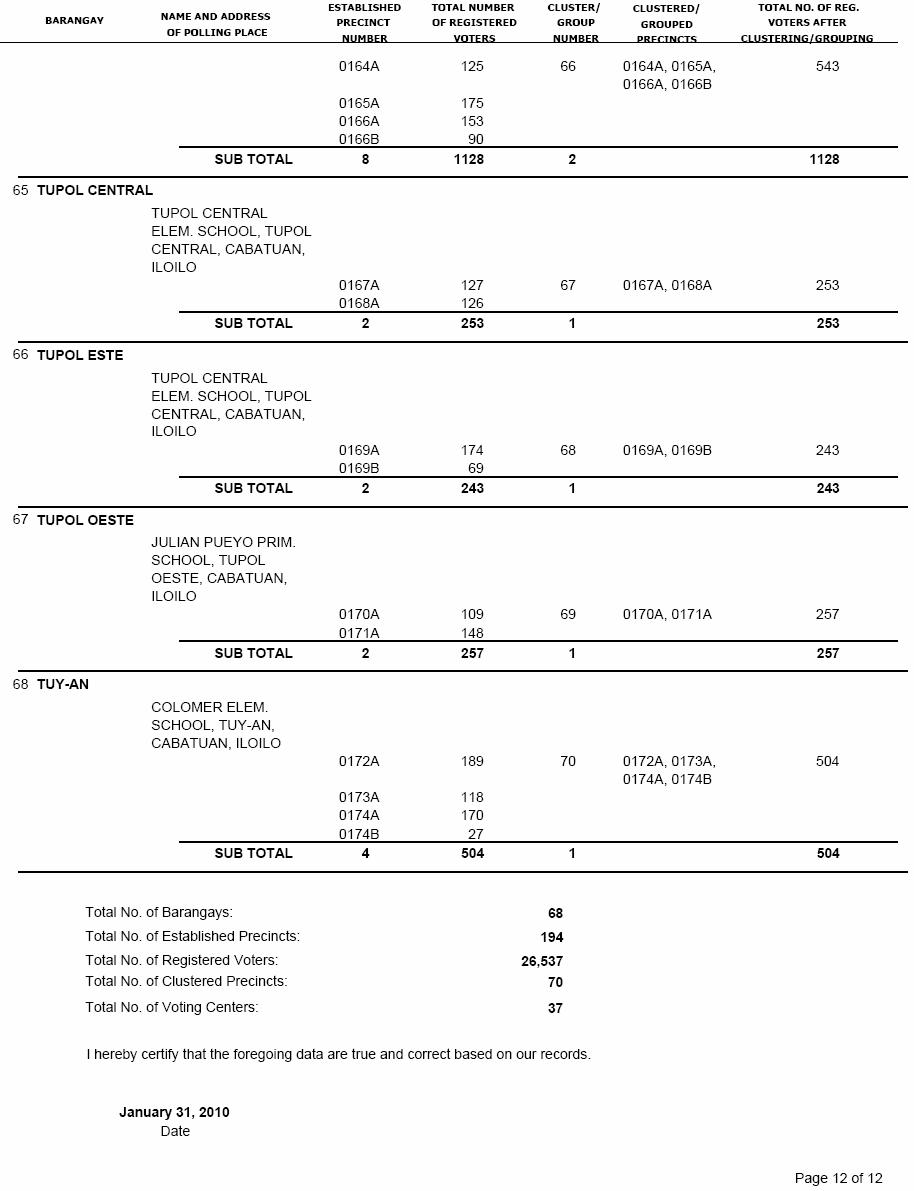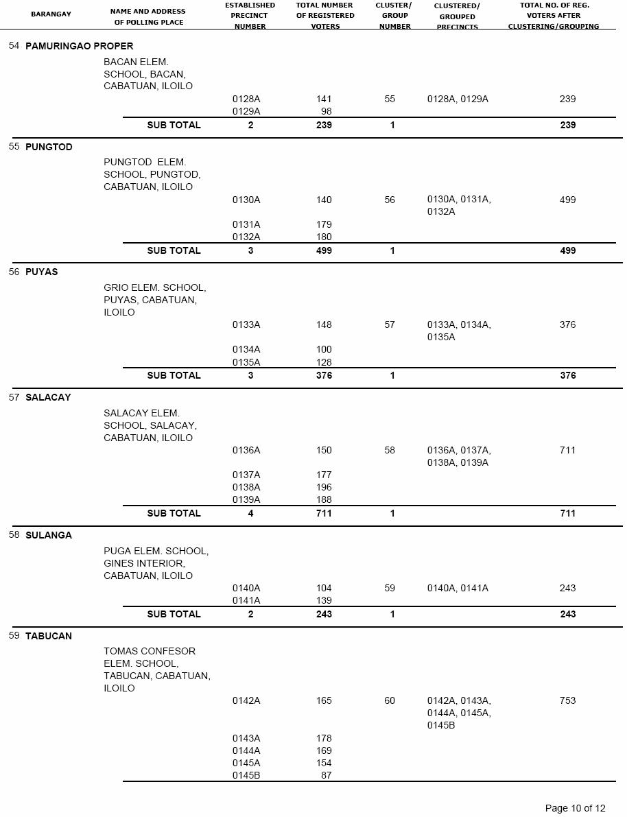 CABATUAN VOTERS STATISTICS, MAY 10, 2010 ELECTIONS