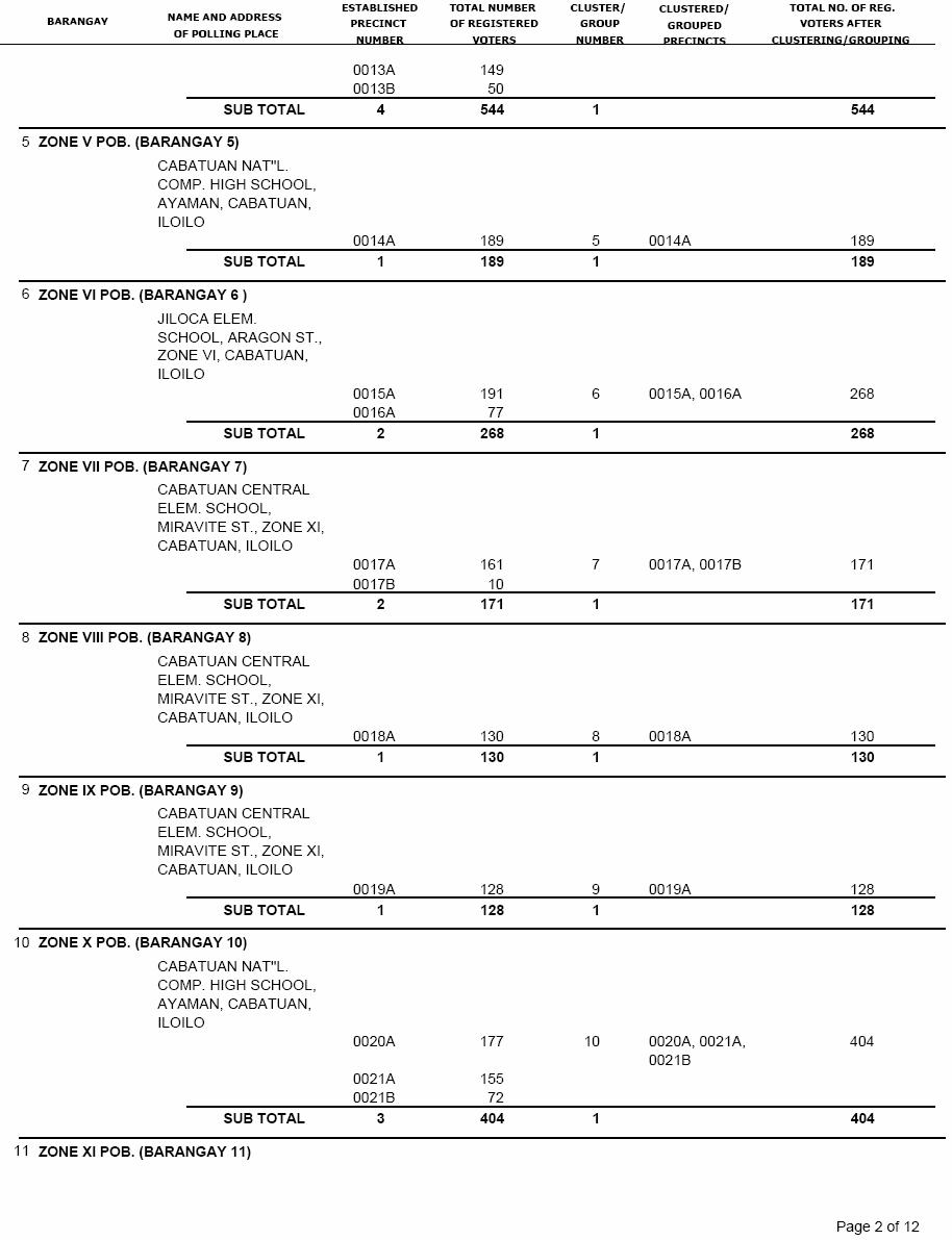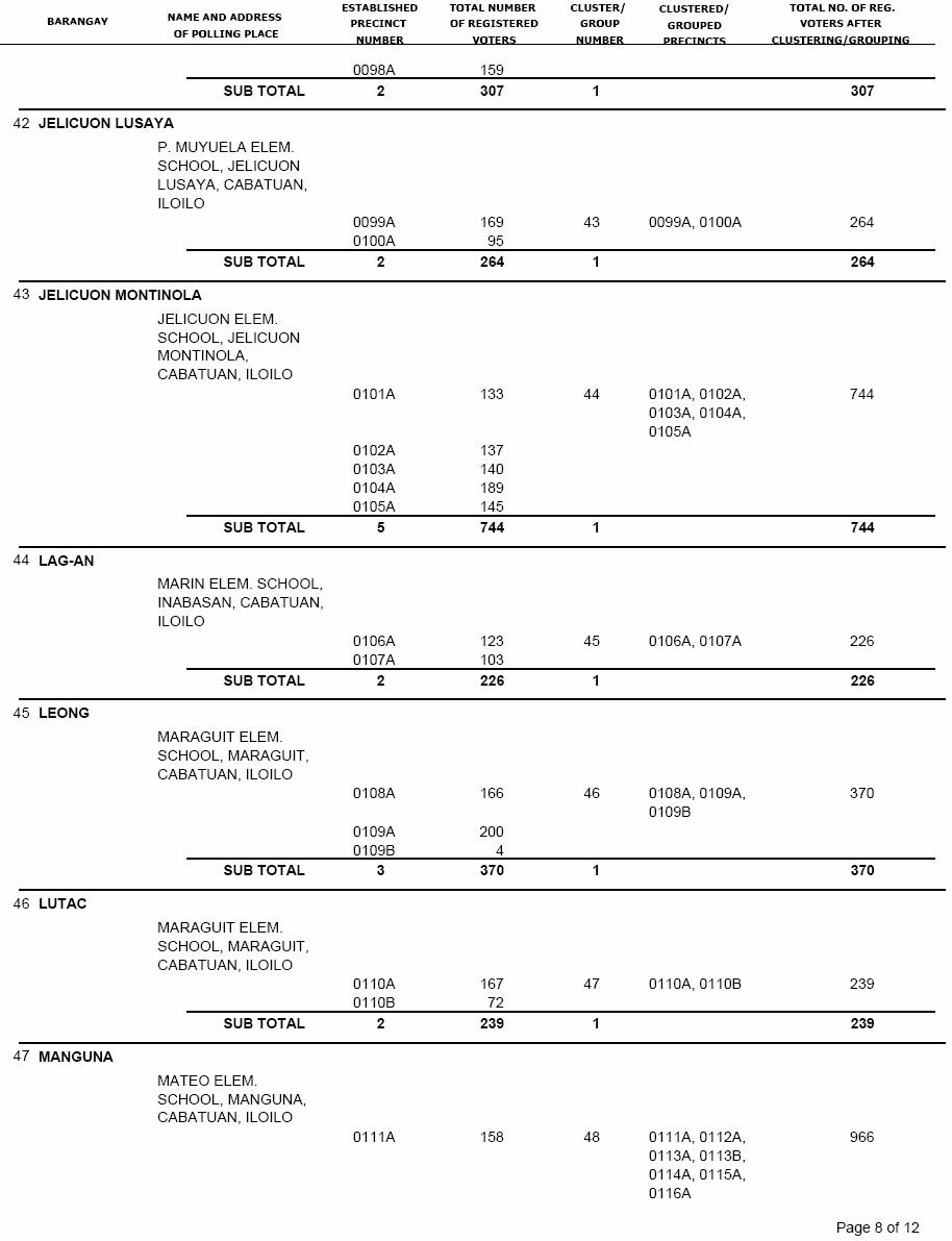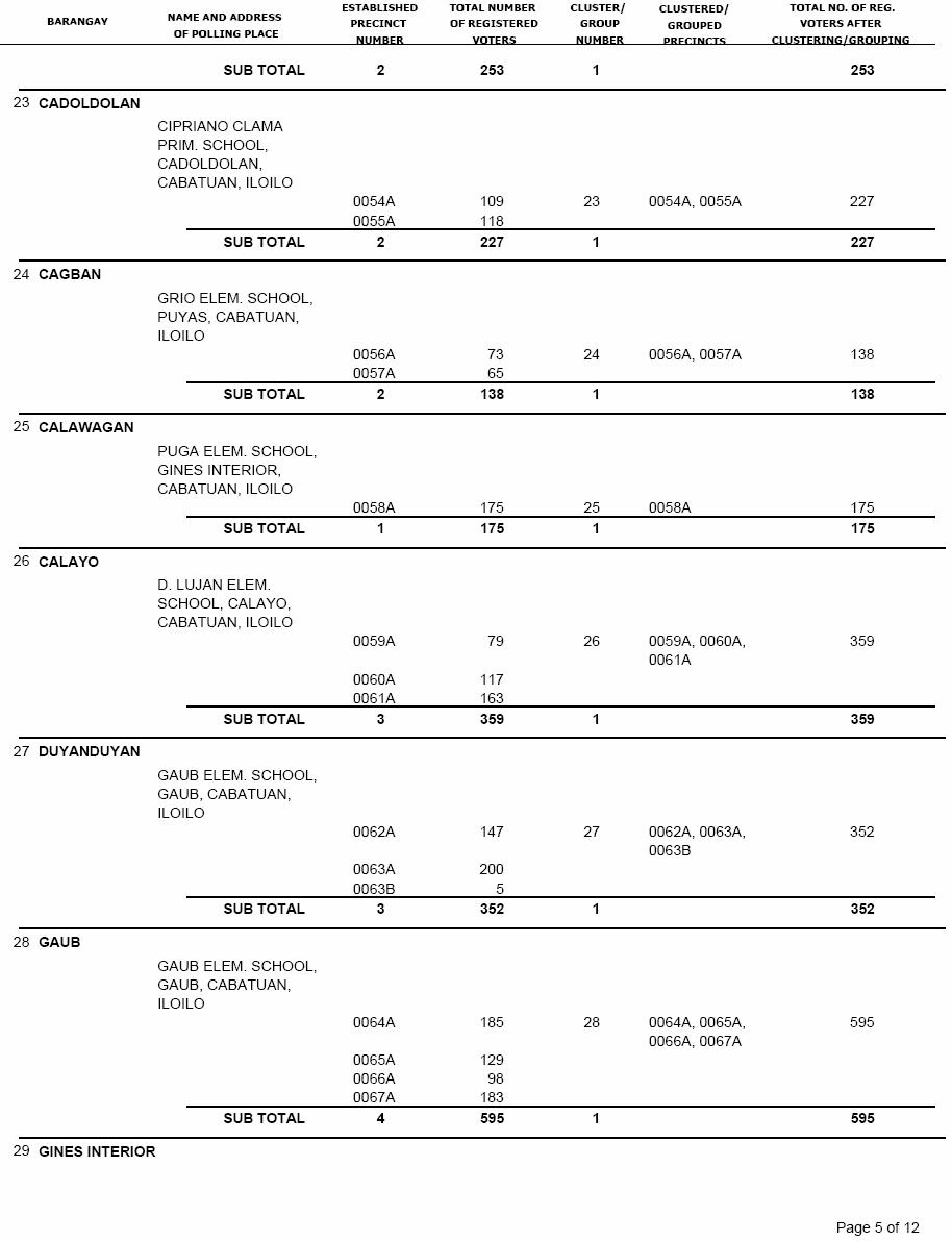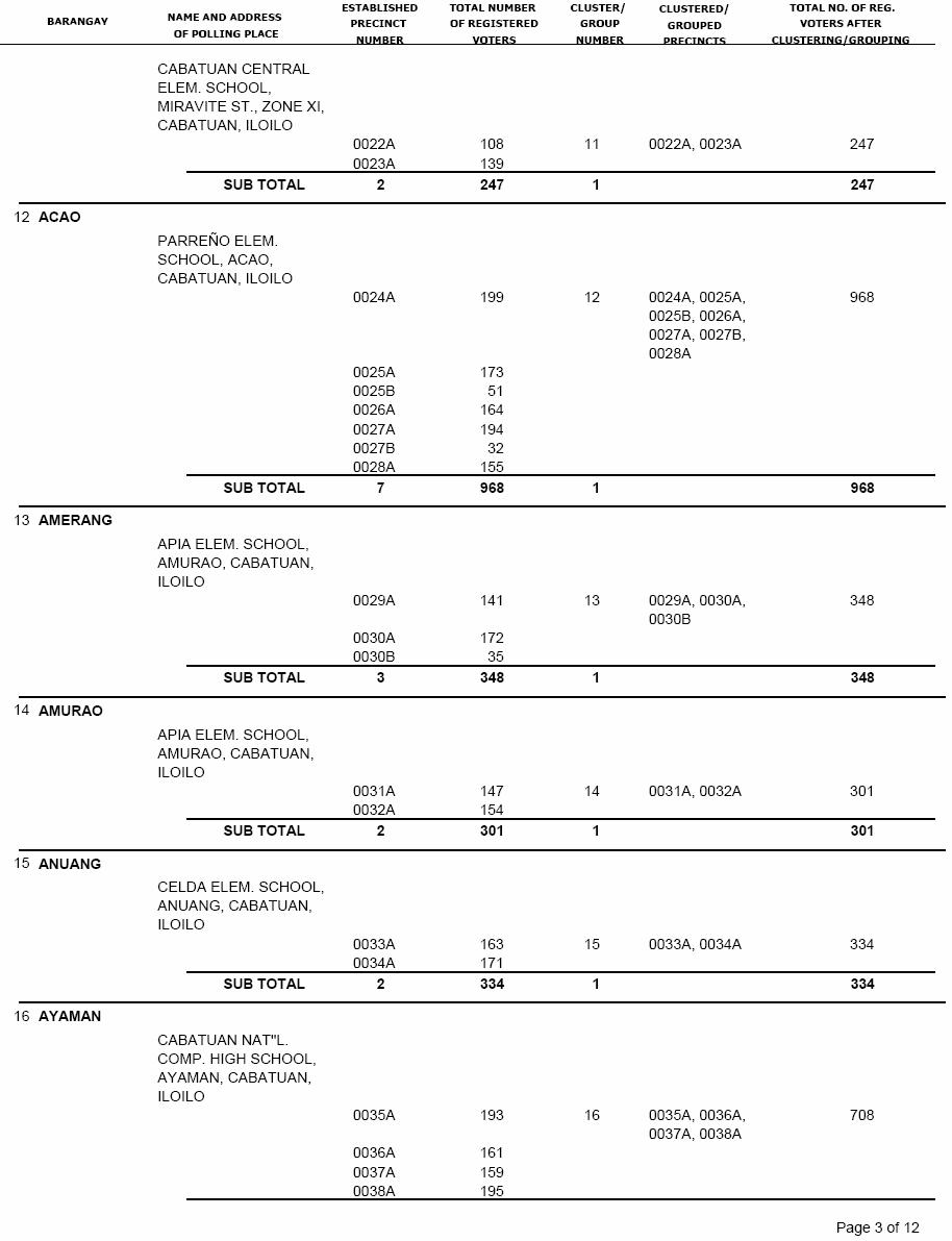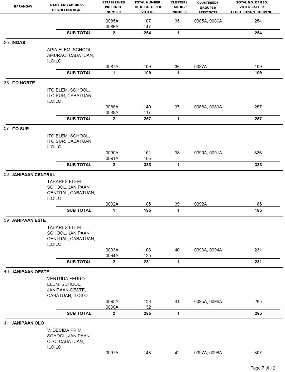 CABATUAN VOTERS STATISTICS, MAY 10, 2010 ELECTIONS