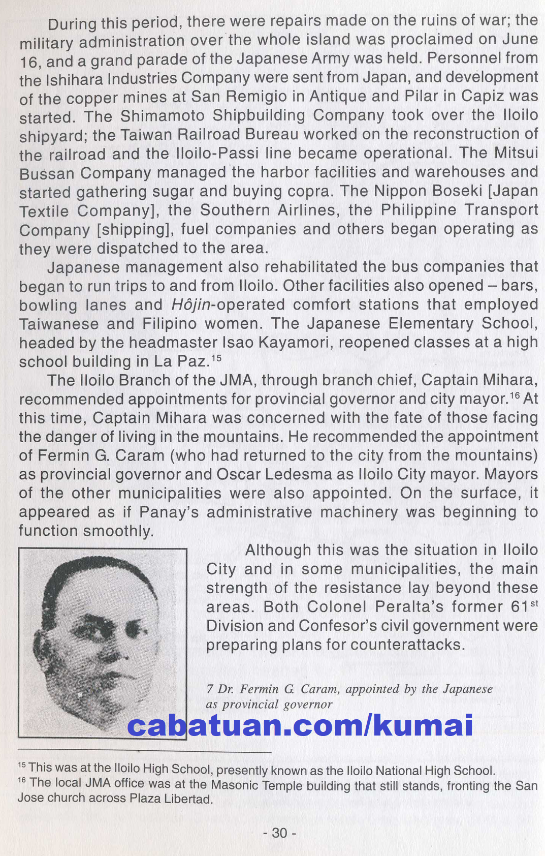 Dr. Fermin G. Caram, appointed by the Japanese as provincial governor. Page 30.