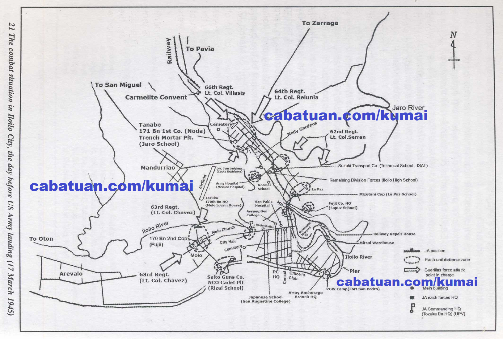 The combat situation in Iloilo City the day before US Army landing (17 March 1945). Page 94.