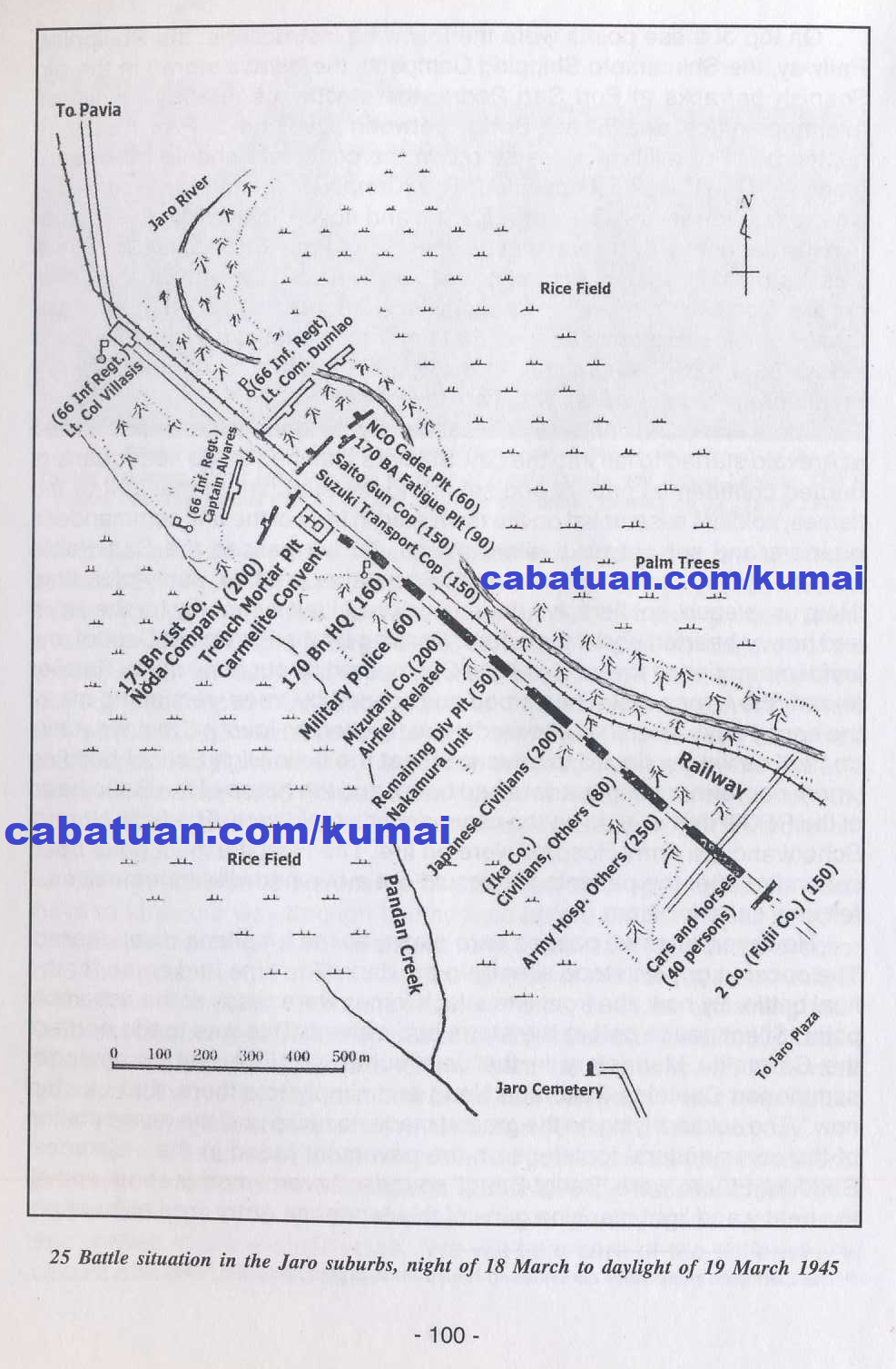About 500 men of the Saitô machine-gun force – the Noda unit of the 1st company Company of the Tanabe unit, the Ika Hôjin Company, and the Fukutome unit of the 1st Company who joined the others in the mountains – kept moving in the mountains west of Janiuay and Lambunao. They built a position at the foot of Mt. Singit, 11 kilometers west of Lambunao. Only the guerrillas attacked this Japanese position, and there were no major encounters here like those at Bocari.
