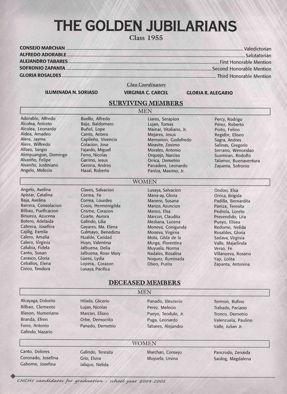 Class Jubilarians, Cabatuan National Comprehensive High School Class 1955