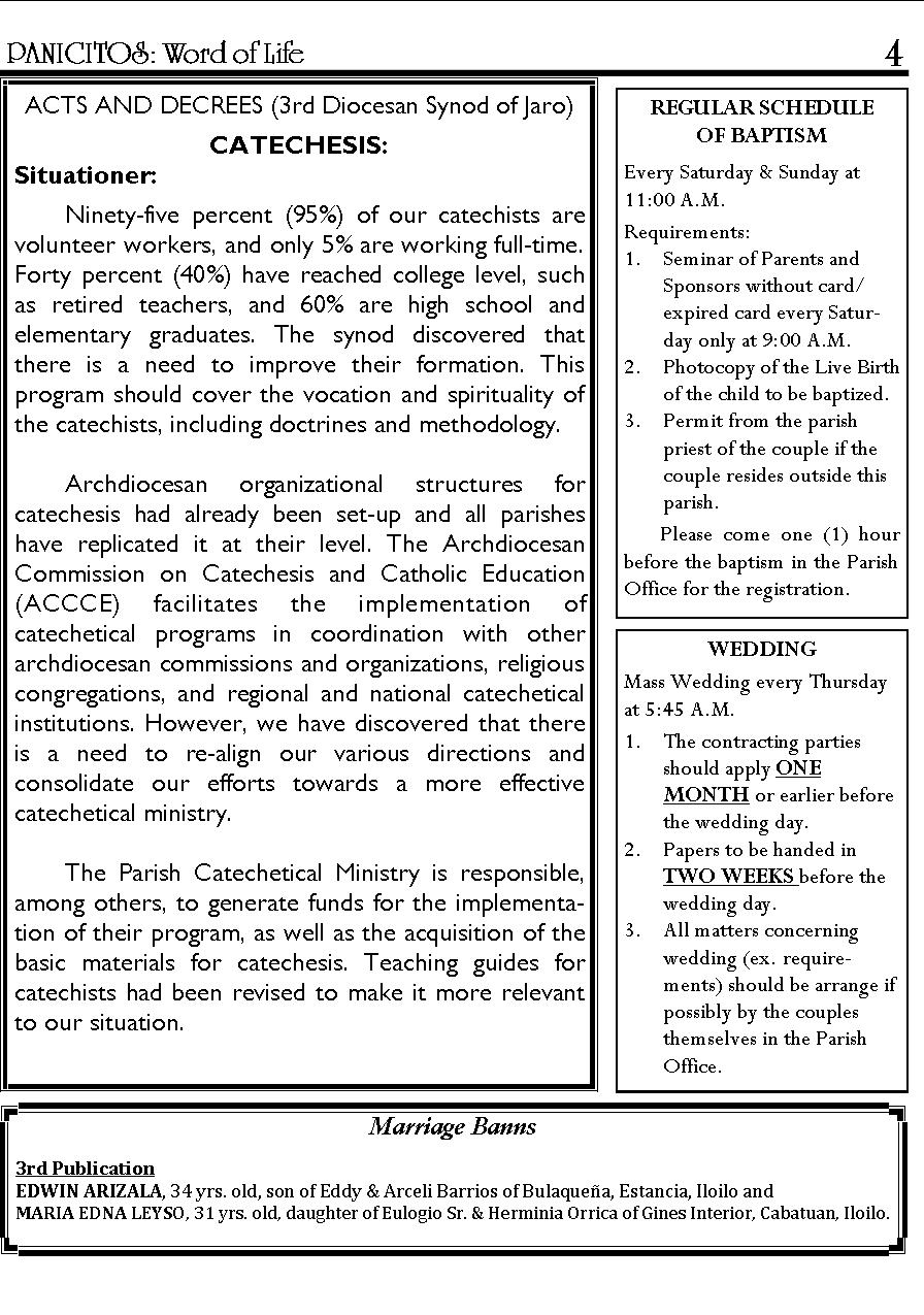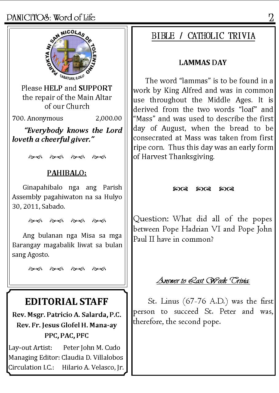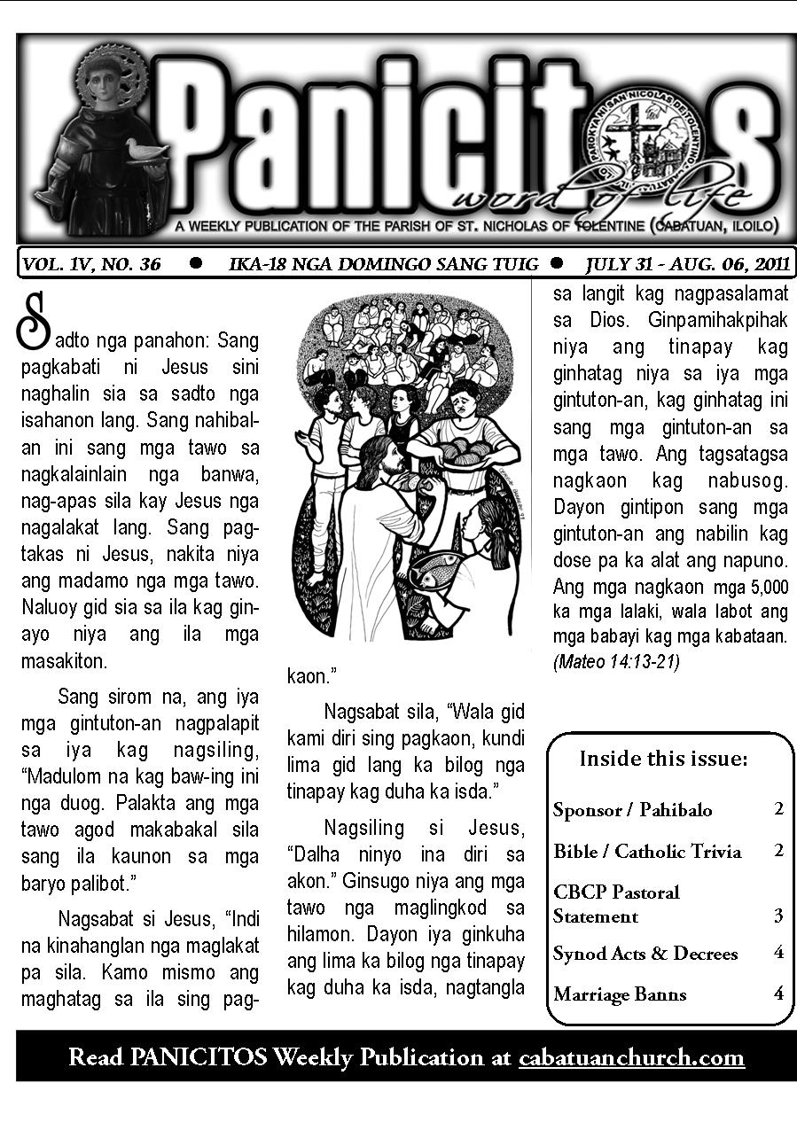 A Weekly Publication of the Parish of San Nicolas de Tolentino, Cabatuan, Iloilo