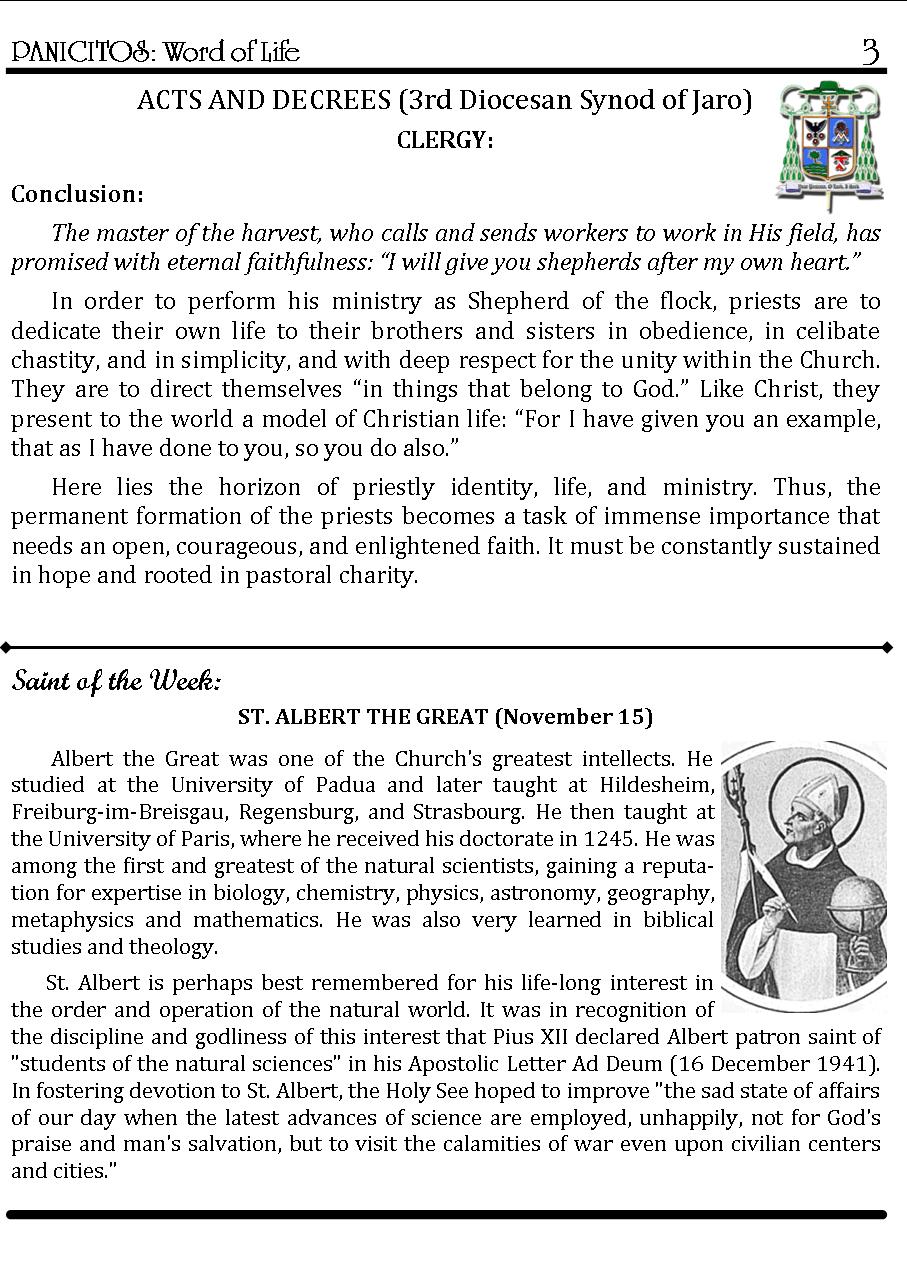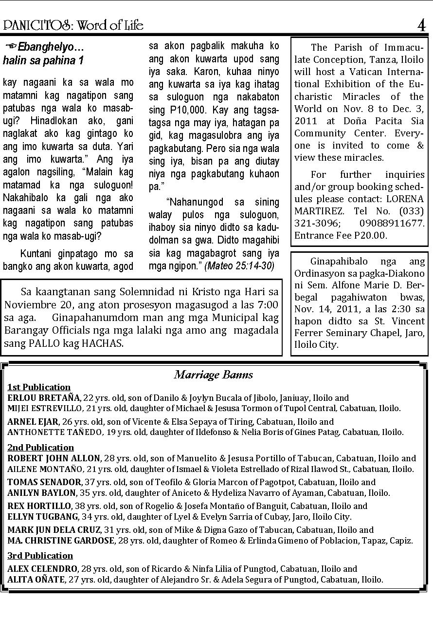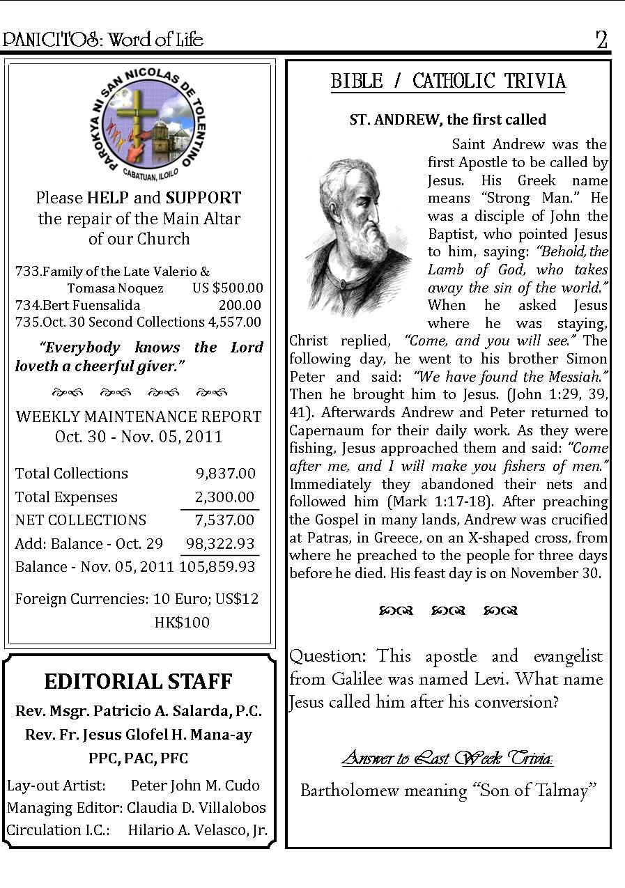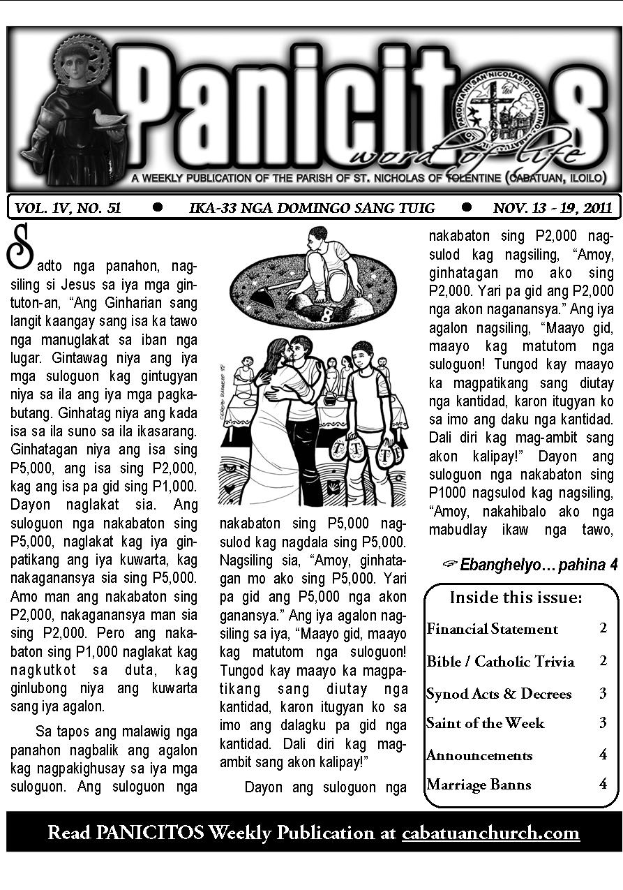 A Weekly Publication of the Parish of San Nicolas de Tolentino, Cabatuan, Iloilo