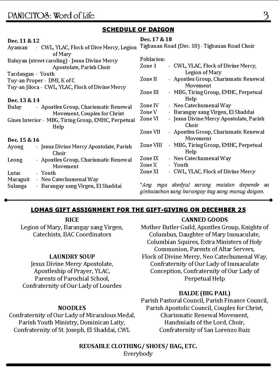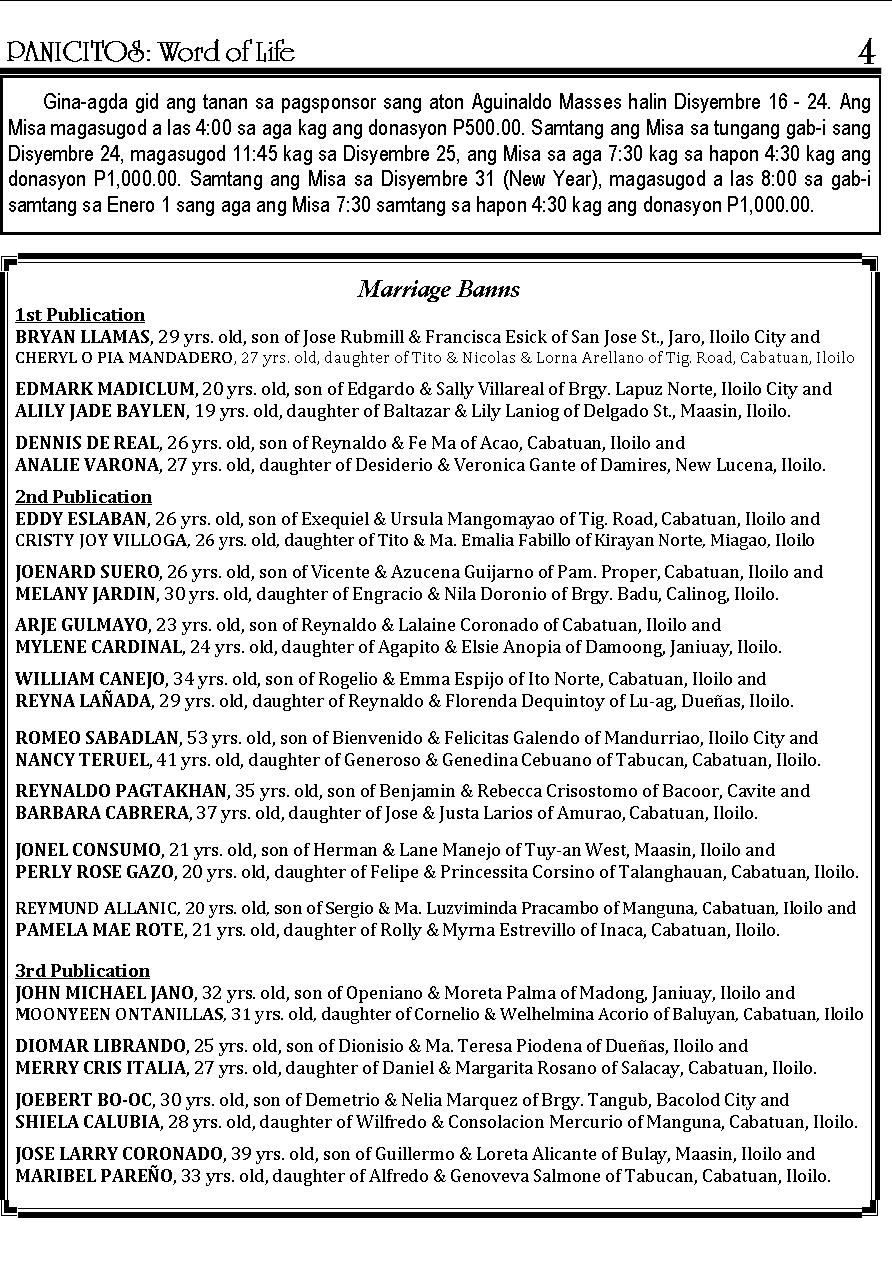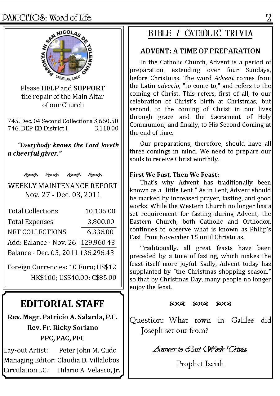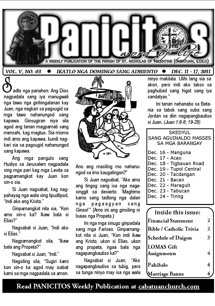 A Weekly Publication of the Parish of San Nicolas de Tolentino, Cabatuan, Iloilo