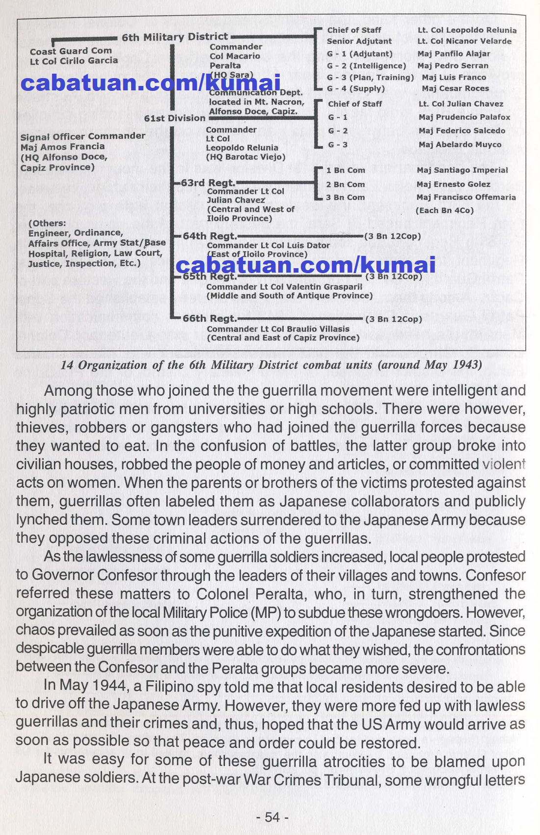Prior to the Joint Punitive Expedition in Panay, Captain Watanabe’s information section distributed confidential papers on the guerrilla organization and situation of the Philippine Army and resisting civilian government to all officers concerned. The outline of the information was as follows: