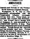 NEWSPAPER ARTICLE MINA AMBUSH OF BORDMAN AND SAVAGE |
