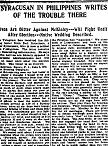 July 19, 1900 (Newspaper Date) NEWSPAPER ARTICLE "Syracusan in Philippines Writes of the Trouble There" Letter of Dell Robertson, H 26th Inf USV, from Cabatuan, dated June 5, 1900 Syracuse NY Evening Telegram, July 19, 1900, Page 7 |