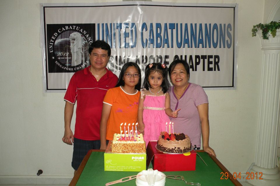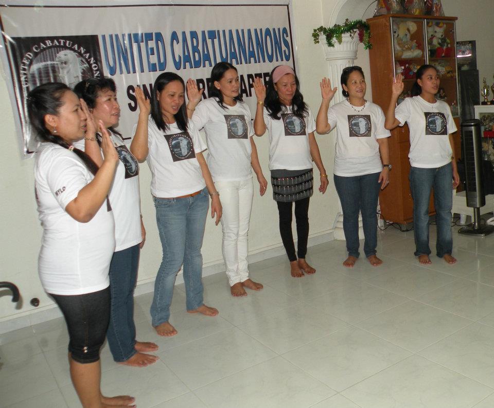"Kami nga mga opisyales kang United Cabatuananons Singapore Chapter, naga sumpa, nga kutob kang amon masarangan, paga tinguhaan namon himuon ang mga bagay nga gina pa abot kanamon bilang opisyales kang diya nga katilingban; nga kami mangin ihimplo kang amon mga kasimanwa, kang pagsakdag kang pagkilalahanay kag pagtamdanay bilang isa ka Cabatuananon, giya sa Singapore kag sa bilog nga kalibutan." Taking their oaths were Mae V. Figueroa, Minia Mallada, Nenen Moneva, Gemma-Ceballos Moneva, Ella Penit, Alice Pacheco Piz and Jonah Orbe. Mrs. Ilma Ranada swore them in. UCab Singapore also celebrated the birthday of Mrs. Ilma Ranada on Sunday, April 29, 2012, during the oath taking event, together with her family, Mr. Dado Ranada and two children. A second batch of officers is scheduled to take their oath sometime in May, 2012, due to differences in work schedules among the officers and members. They are Ma. Daisy Caroline Jordan, Dhors Larios, Roselle Rute, Emelita Almaquer, Aprilmay Rute, Vevian Alinojan, Rafe Sapalaran, Meschel Misagal and Janice Morata. The United Cabatuananons - Singapore Chapter was created on May 5, 2011 as the official Cabatuan.com group in Singapore, with the objective of promoting and enhancing the communication, interaction and unity of Cabatuananons in that country and worldwide. Its core members are composed of Cabatuananons currently working or living in Singapore. The first acquaintance party was held on October 30, 2011 at Botanic Gardens, and the first Christmas Party was held on December 11, 2011, also at botanic Gardens. Its parent group, United Cabatuananons, was created on March 4, 2011. Photos and info by Minia Mallada, Mae V. Figueroa, Ilma Ranada, Dado Ranada, Sally Claudio Pama Send this page to your facebook friends or groups. Click here ->